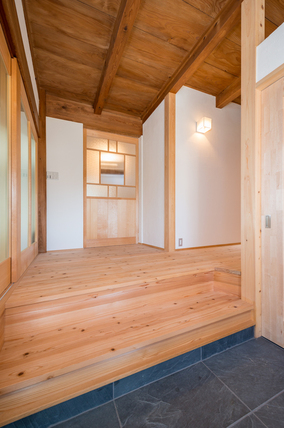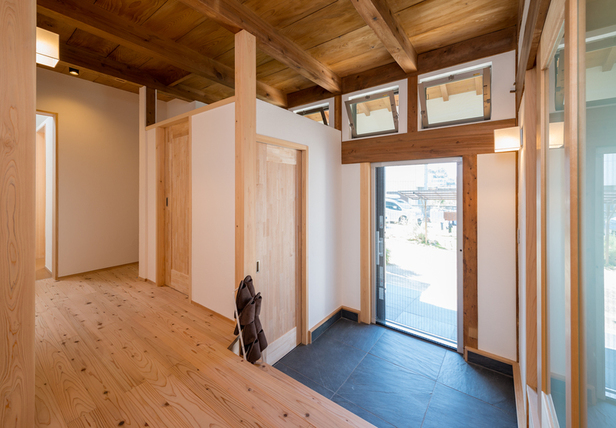 玄関が明るくなるように、玄関上部にハイサイドライトの窓を付けました。
