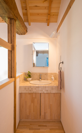 天井は昔のままの梁と無垢板をあらわしとしています。