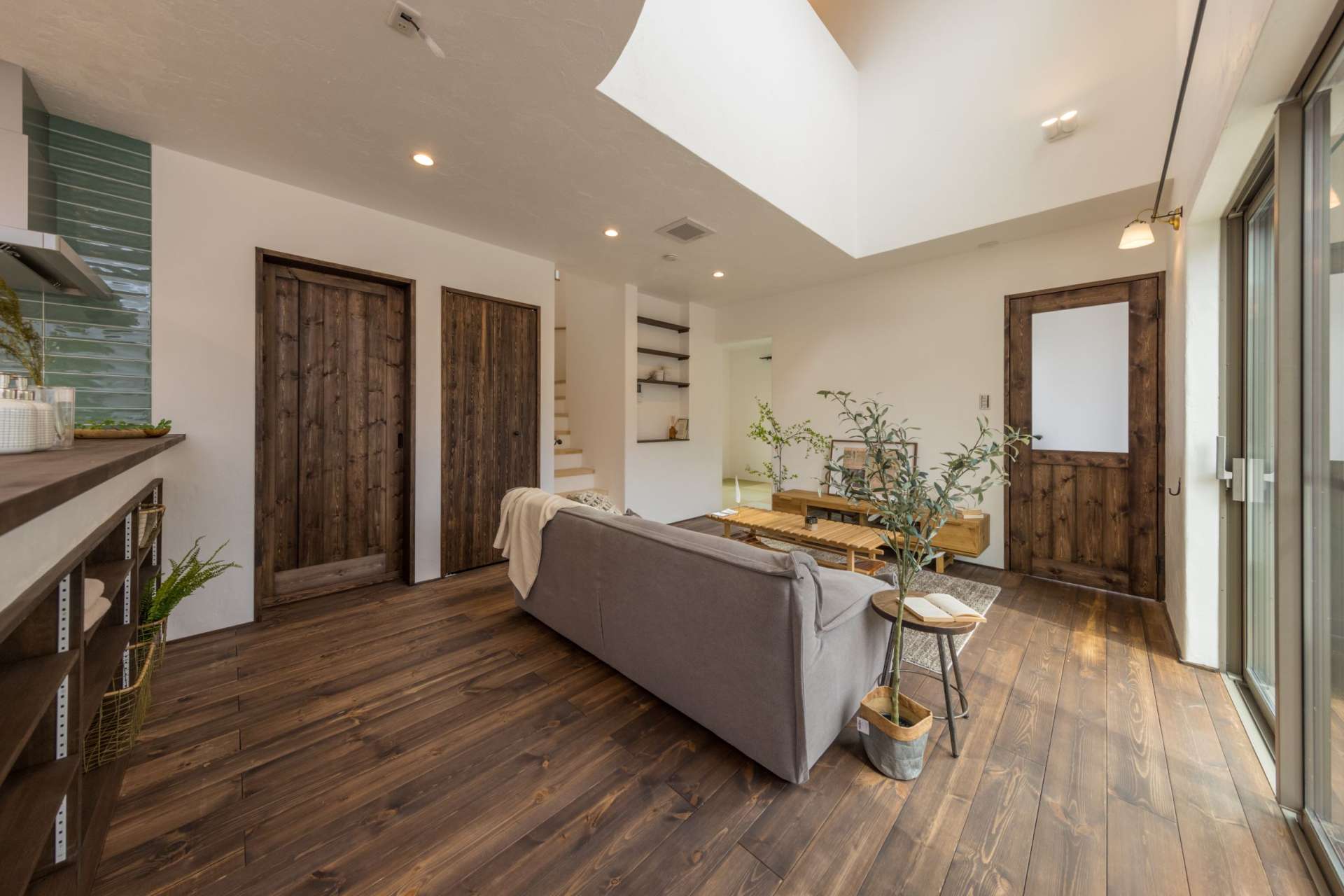実例:ある施主様の家では、リビングに無垢のオーク材フローリングと漆喰壁を採用。大きな高窓で採光を確保しつつ、隣家からの視線を遮る設計で、開放感とプライバシーを両立しました。