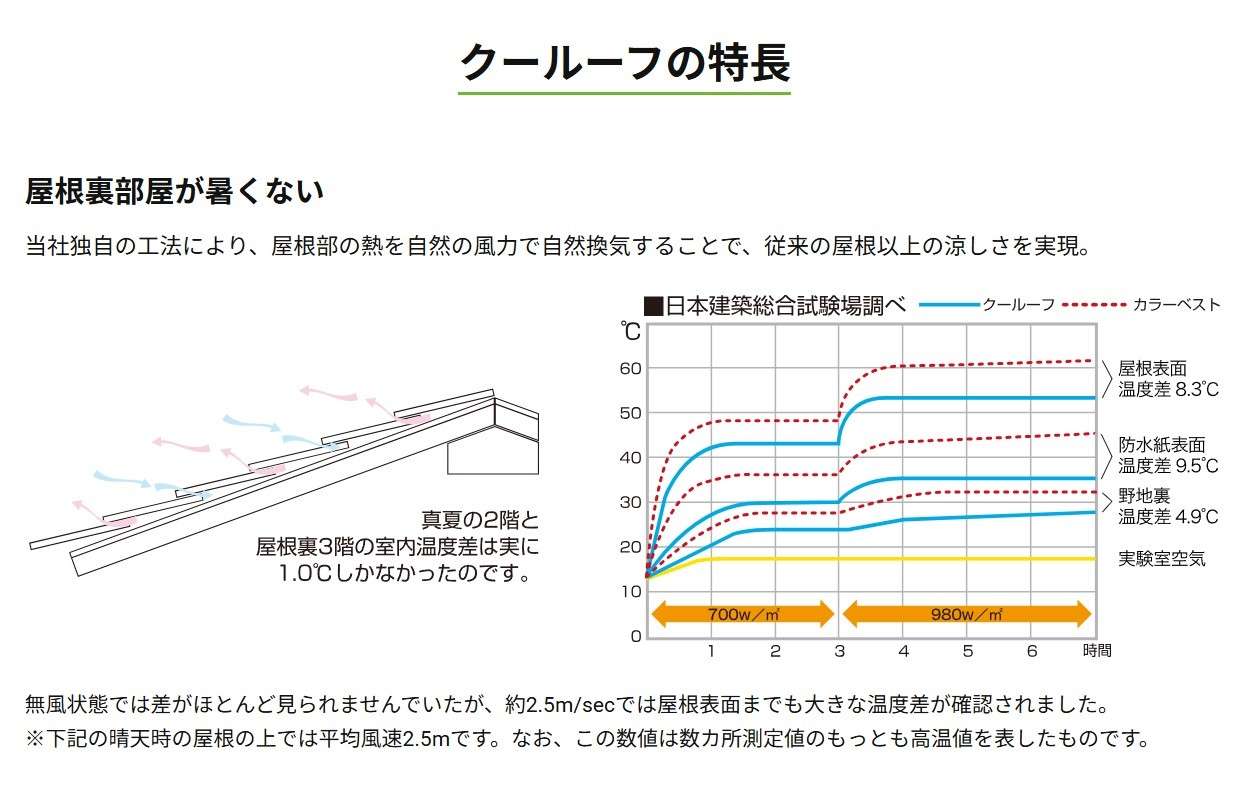・快適な室内環境: 屋根の温度が下がると、2階やロフトの部屋も涼しくなり、エアコンの効きが良くなる。夏の2階が「サウナ状態」になるのを防げます!
