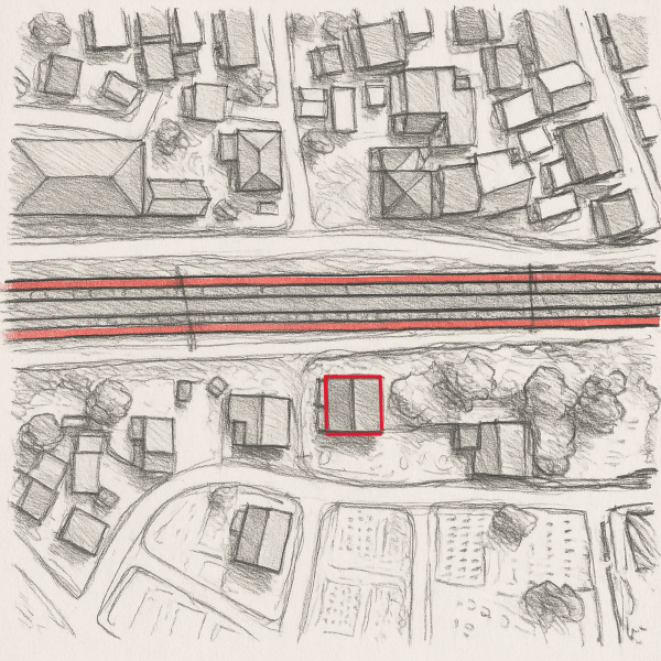 交通量の多い幹線道路や鉄道に近い家。